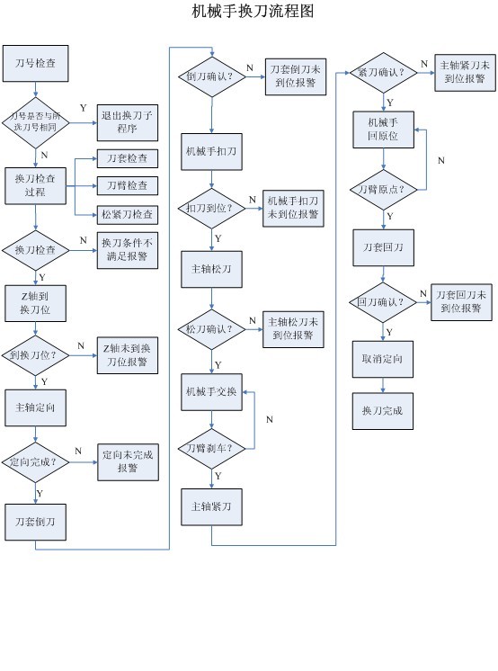 ??????換刀開始或換刀完成時,機(jī)械手所停止到的安全位置。在該點(diǎn)會有機(jī)械上的傳感器信號,通常稱之為刀臂原點(diǎn)信號。
