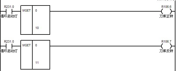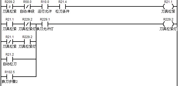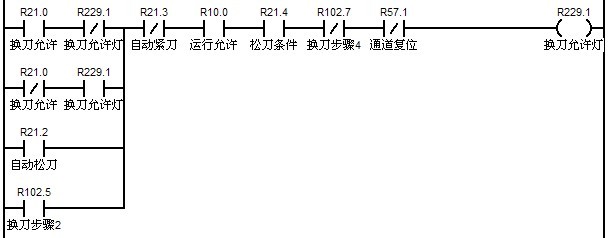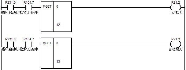 該程序段的意思是當(dāng)兩個寄存器的值相等,則表示當(dāng)前所選刀與當(dāng)前主軸上的刀號相同,不進(jìn)行換刀。