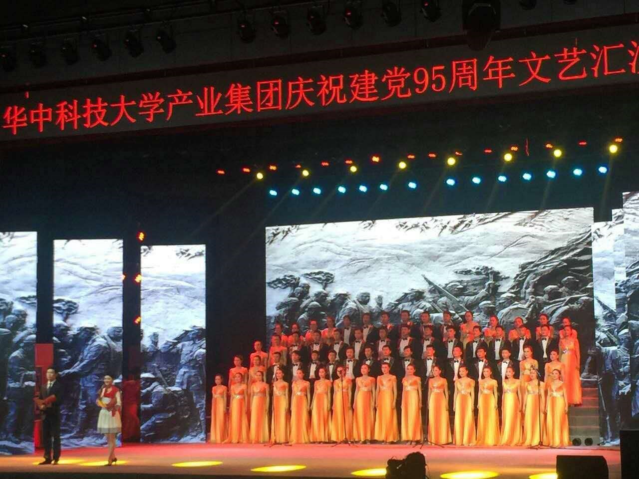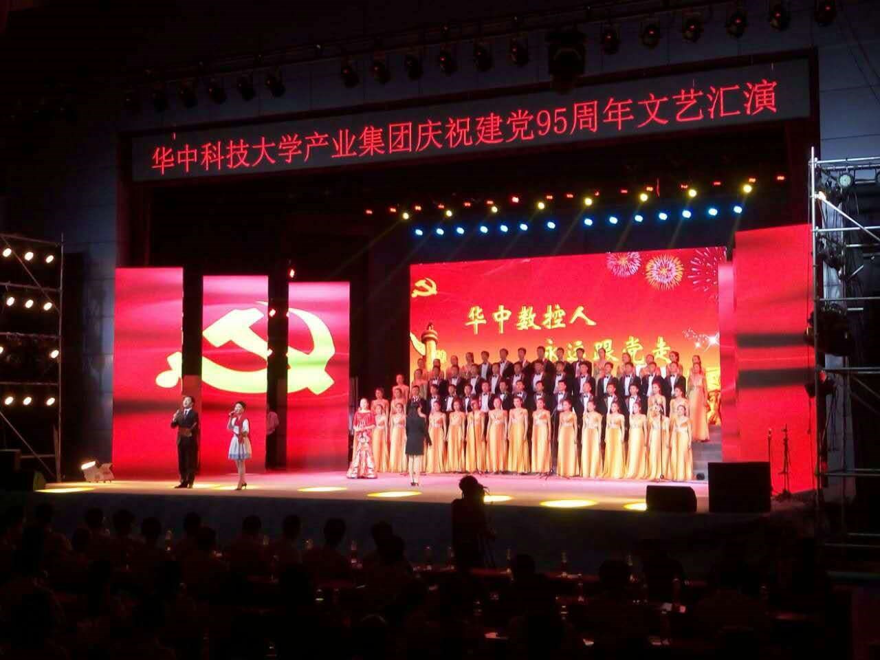 2016年6月18日,產(chǎn)業(yè)集團(tuán)在華中科技大學(xué)韻苑體育館隆重舉行了紀(jì)念建黨95周年文藝匯演活動(dòng),晚會(huì)以“攜手同行 共創(chuàng)輝煌”為主題,現(xiàn)場(chǎng)座無虛席,通過回首黨的征程,向黨的生日和黨代會(huì)獻(xiàn)禮。華中數(shù)控演繹的節(jié)目是:詩與歌《中國大腦暢想曲》。節(jié)目以公司的發(fā)展歷史進(jìn)程為藍(lán)本,以緊跟著黨走,實(shí)現(xiàn)科技興國中國夢(mèng)為主旋律,展現(xiàn)了新中國科技工作者不斷打破國外技術(shù)封鎖,用中國大腦裝備中國制造的光輝事跡。整個(gè)演出非常成功,華麗的禮服、整齊的陣容、恢弘的氣勢(shì),昂揚(yáng)的精神風(fēng)貌,深獲現(xiàn)場(chǎng)觀眾和領(lǐng)導(dǎo)的一致好評(píng)。