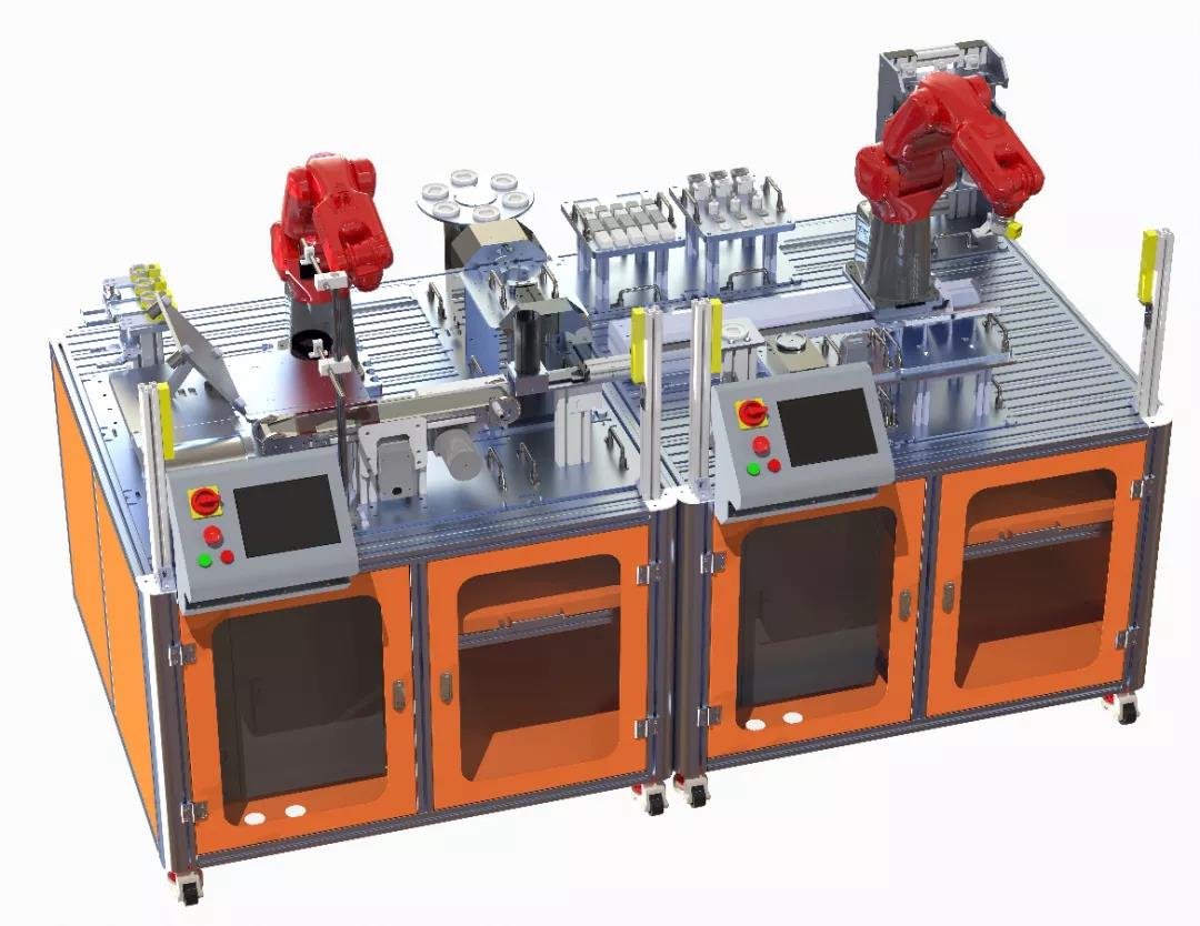 工業機器人技能鑒定與培訓方案采用模塊化設計,可組合進行初級、中級、高級三個等級的項目實訓,依次遞進,高級別涵蓋低級別技能要求。用戶可單桌面應用進行基礎實訓考核,也可雙桌面拼接實現雙機器人協作實訓考核。