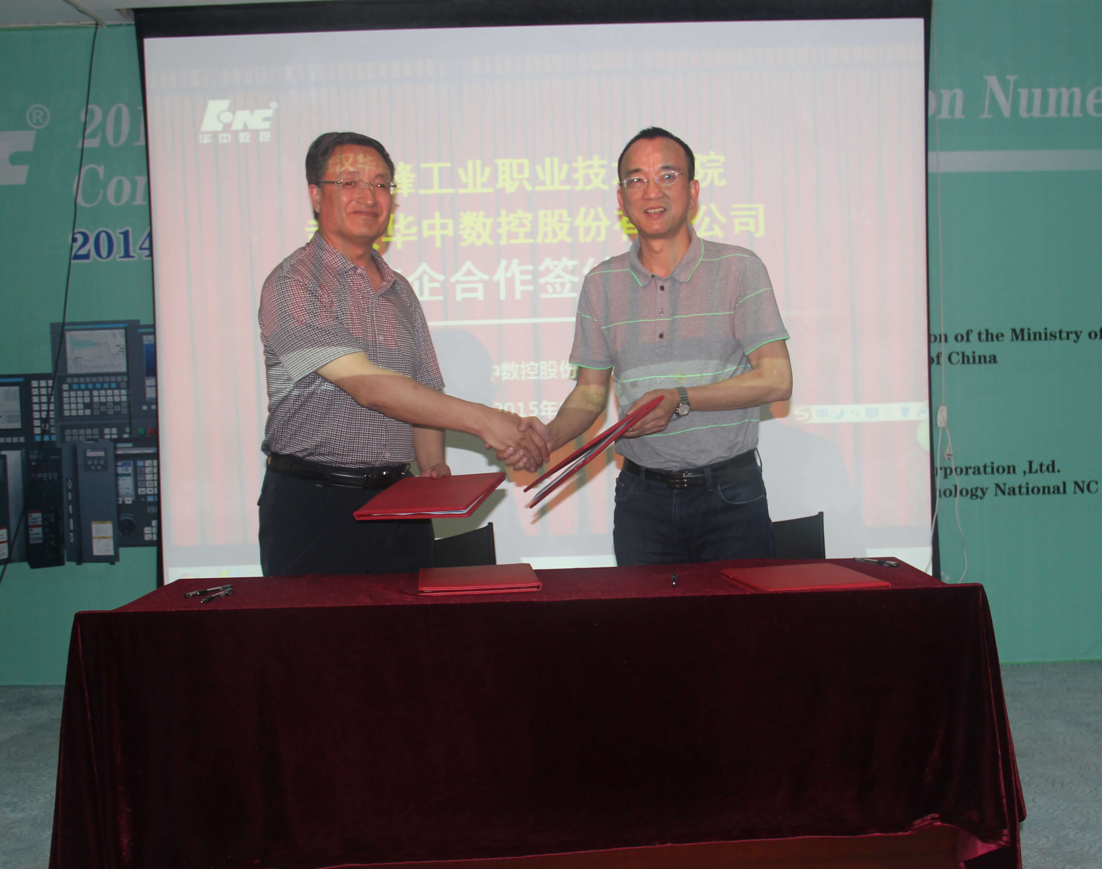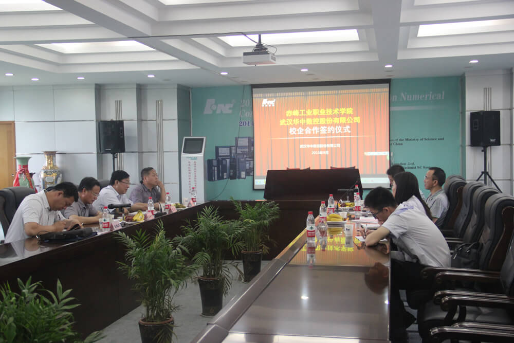 2015年6月4日,赤峰工業(yè)職業(yè)技術(shù)學(xué)院霍書記一行來訪,與武漢華中數(shù)控股份有限公司副總裁熊清平等領(lǐng)導(dǎo)舉行校企合作交流會。雙方就深化校企合作關(guān)系,實現(xiàn)深度合作達成一致,并且簽訂了相關(guān)項目合作協(xié)議。