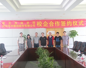 2015年6月23日,商丘技師學院的劉福建院長一行來武漢華中數控股份有限公司參觀,與熊清平副總裁、周理部長等領導舉行校企合作交流會。雙方就深化校企合作關系,實現深度合作達成一致,并且簽訂了相關項目合作協議。