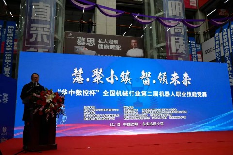 2018年 12月1日,由機械工業職業技能鑒定指導中心主辦,遼寧東升智能產業發展有限公司、武漢華中數控股份有限公司承辦,中國焊接協會、中國模具工業協會中國汽車工程學會、中國鑄造協會、中國印刷及設備器材工業協會中國電器工業協會、中國工程機械工業協會、中國勞動學會機械分會、機械工業經濟管理研究院、于洪區人民政府、沈陽職業技術學院協辦的“華中數控杯”全國機械行業第二屆工業機器人職業技能競賽在遼寧東升智能產業發展有限公司隆重開幕。