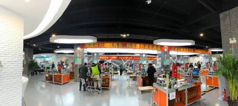 本次比賽在沈陽永安特色小鎮的華中數控(遼寧)智能制造應用示范基地舉辦,基地是目前東北地區規模最大、設備最為齊全的工業機器人實訓基地。基地配有媒體教室、實訓室、技能訓練中心等教學場所,占地面積近2萬平方米。是由武漢華中數控股份有限公司與遼寧東升智能產業發展有限公司共同出資打造。引進了工業機器人操調實訓平臺、工業機器人機電一體化拆裝工作站、智能制造生產線、五軸加工中心以及3D打印機等先進智能制造設備60余套,可同時容納300人進行實訓。為此次競賽提供了充足條件。