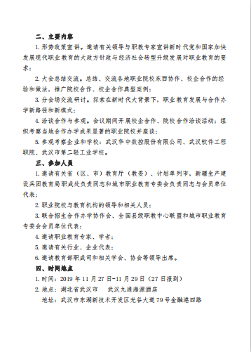 關(guān)于聯(lián)合舉辦新時(shí)代職業(yè)教育合作辦學(xué)交流研討暨協(xié)作會(huì) 2019 年年會(huì)的通知