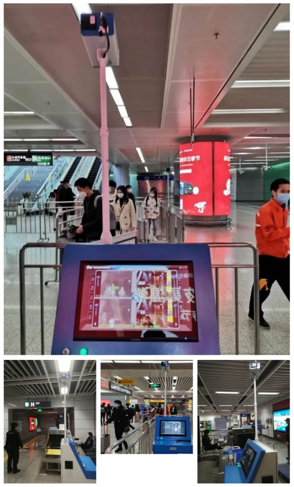 ▲ 深圳地鐵多個站點紅外智能體溫檢測系統使用現場