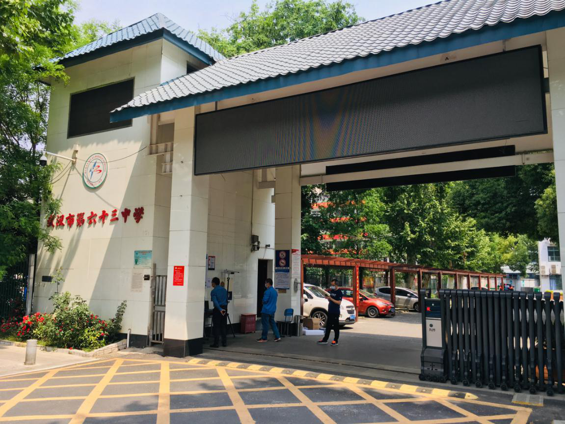 在武漢市交通學校,華中數控紅外測溫儀已經在校門口為師生把控健康第一道防線,學生們依次排隊檢測,等待入校。保衛科負責人劉凱介紹:根據學校的防控要求,每位學生入校都需要紅外測溫、查身份查核酸檢測結果和健康碼、進行消毒……跟傳統額溫槍測溫排隊的現象相比,華中數控紅外人體測溫系統高效快捷,學生們無需停留,為復學備考節省了寶貴時間。?