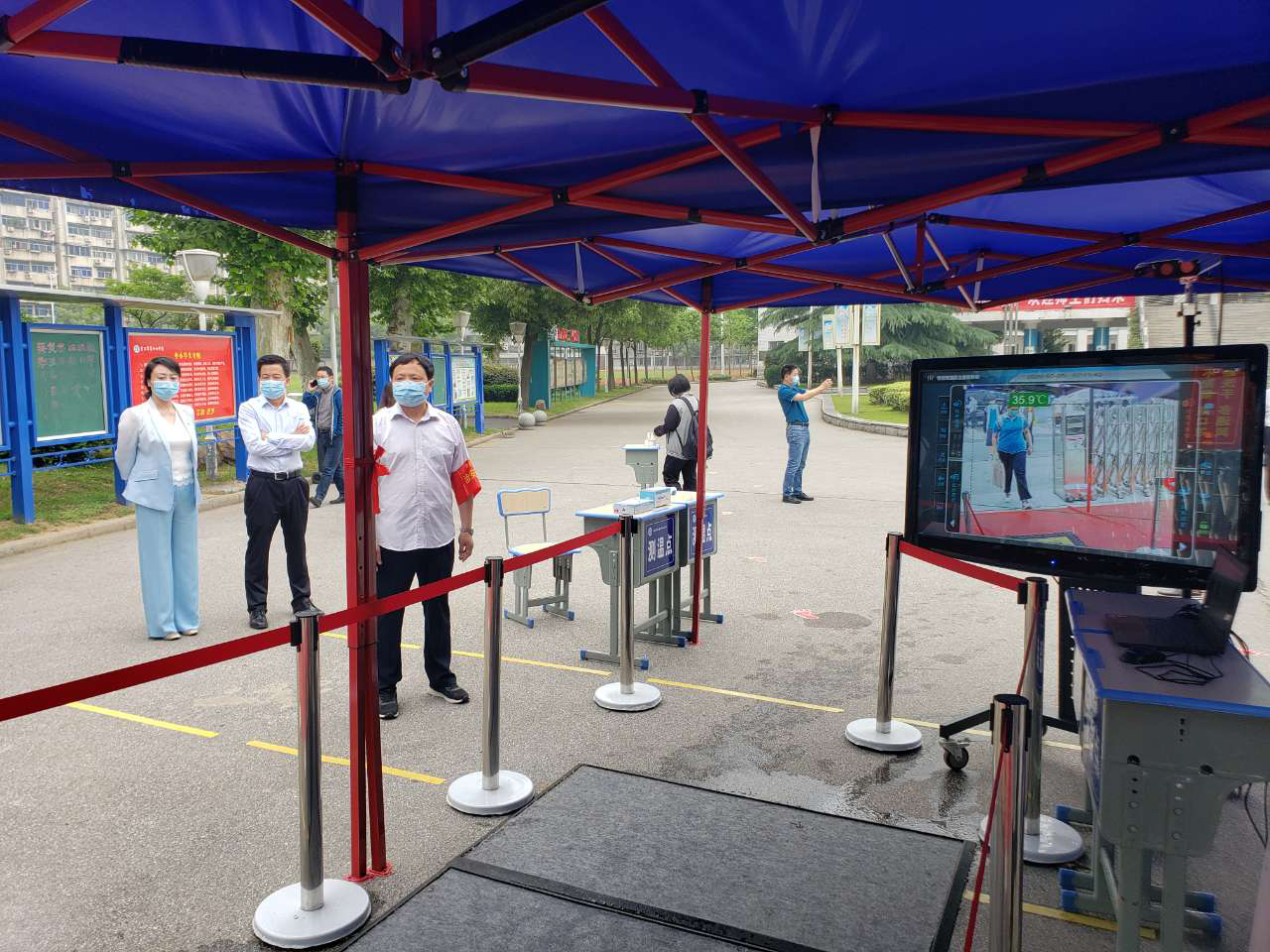 該設備的技術特點是通過先進的光電子技術、熱成像技術、圖像識別技術,最遠可對6—8米處的師生進行快速體溫檢測,并自動跟蹤鎖定人體體表最高溫度,一旦發現可疑發熱人員,儀器將自動儲存信息,并立即報警。在嚴格管控校園測溫的同時,可有效助力學校信息化防疫,快速實現對校門口進出人員進行體溫篩查,有效解決防疫人員緊缺、手工測溫效率低等問題,縮短了日常疫情防控檢測時間,更減少人員交叉感染風險。
