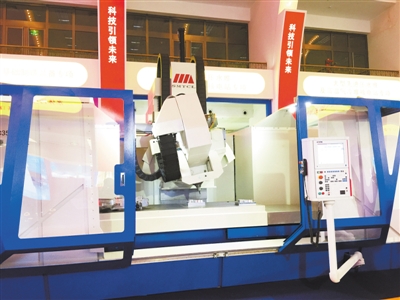 國家“十二五”科技創新成就展上展出的大型五軸聯動加工中心及配置的“華中8型”高性能數控系統