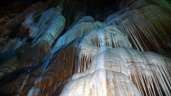 通山隱水洞的形成:5億多年前,地質上稱為寒武紀,通山隱水洞這個地方是一片海洋,海底沉積了厚厚的碳酸鹽巖。后來地殼抬升,海洋變成了陸地,海底的碳酸鹽巖經過漫長的地質作用形成了山,同時在山體內部形成了斷層和裂隙。經過百萬年的漫長歲月,地下水流不斷擴大溶洞并集中起來形成地下河,地下河又更快地將洞穴周圍溶蝕的碳酸鹽巖和洞穴崩塌的碳酸鹽巖塊石溶蝕搬走,在山體內形成了規模很大的通山隱水洞。后來數十萬年中,溶解有碳酸鈣的水從洞頂和洞壁的巖層裂隙中滲透到洞穴空間,由于水體的溫度、壓力等條件的變化,造成水中的二氧化碳逸出,于是水溶液中的碳酸鈣便沉淀下來,形成鐘乳石。甚至到今天隱水洞的鐘乳石還在生長。因此,通山隱水洞是一個年輕的洞穴,地下河如精靈般婉延穿行,鐘乳石如少女般婀娜多姿。洞內景觀豐富多彩,奇特壯麗,其獨特的巖溶地貌,造型之逼真,巖體之巨大,令游客們嘆為觀止。