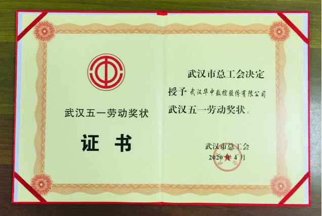 武漢華中數(shù)控股份有限公司榮獲2020年武漢市五一勞動獎狀